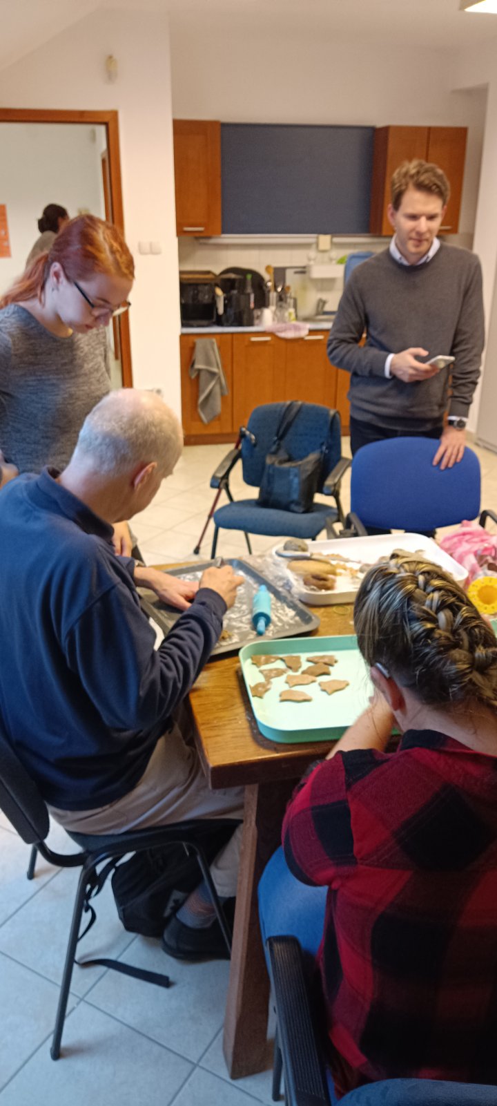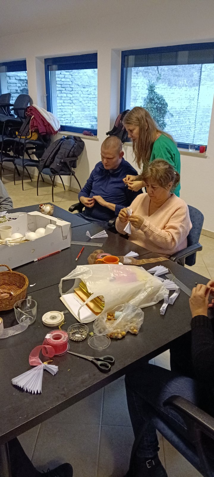 A program 2022. november 16-án, szerdán délután 14 órakor kezdődött, telephelyünk nagy, közösségi termében. Csapatunk összesen 30 főből állt: 20 egyesületi tag, 6 munkatárs és 4 egyetemi hallgató, akik segítőként érkeztek. Két különböző tevékenységben vehettek részt a megjelentek. Az egyik kekszsütés volt, a másik pedig kézműveskedés, ahol kétféle karácsonyi díszt lehetett csinálni.