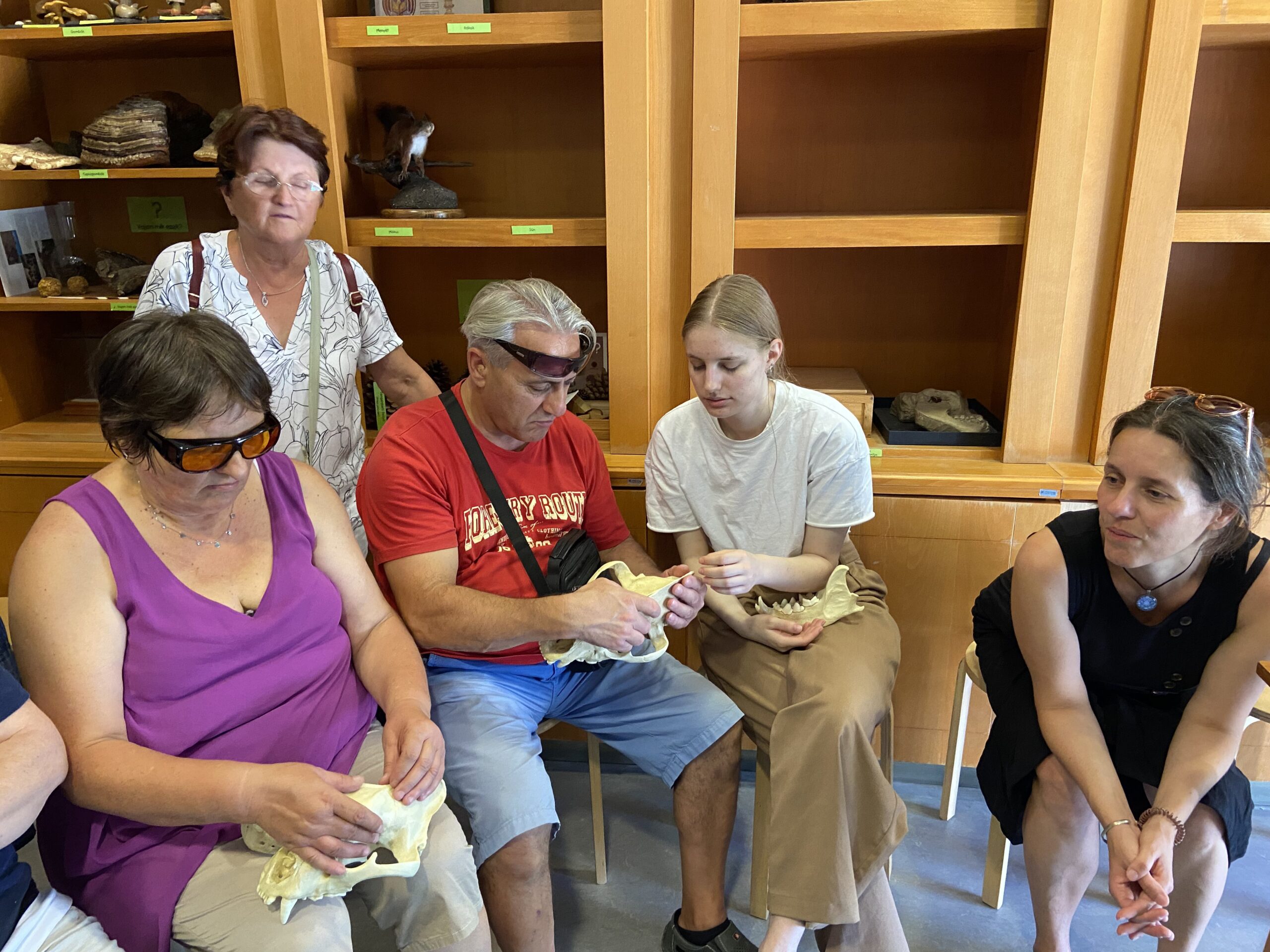Látogatásunk első felében emlősállatok koponyáival ismerkedtünk